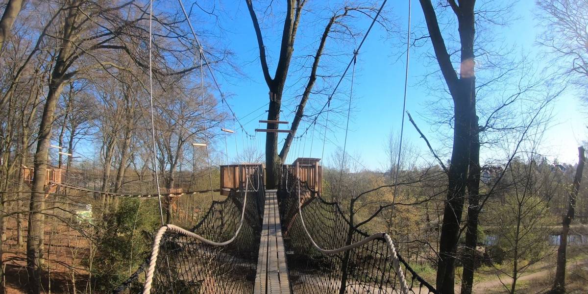 Årets nyhed i Odense Zoo hedder meget passende Bøgetoppen og appellerer mest til gæster uden højdeskræk. Der er tale om treetop walk i mere end to fuldvoksne hangiraffers højde.
