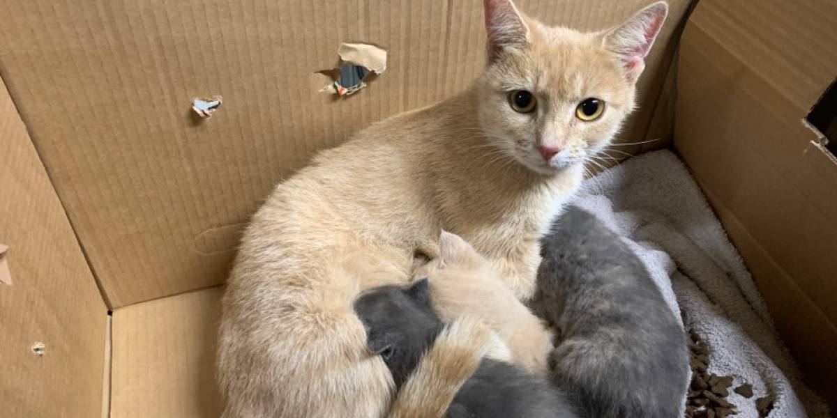 En kattemor med fem killinger blev tapet inde i en papkasse og efterladt på en parkeringsplads på Fyn.